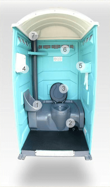 O banheiro químico modelo Luxo, possui tanque de contenção de dejetos em polietileno de alta densidade, vaso sanitário com assento e tampa, bomba de descarga de pé, mictório, porta papel higiênico, espelho, álcool gel higienizador para as mãos, teto translúcido e piso antiderrapante.